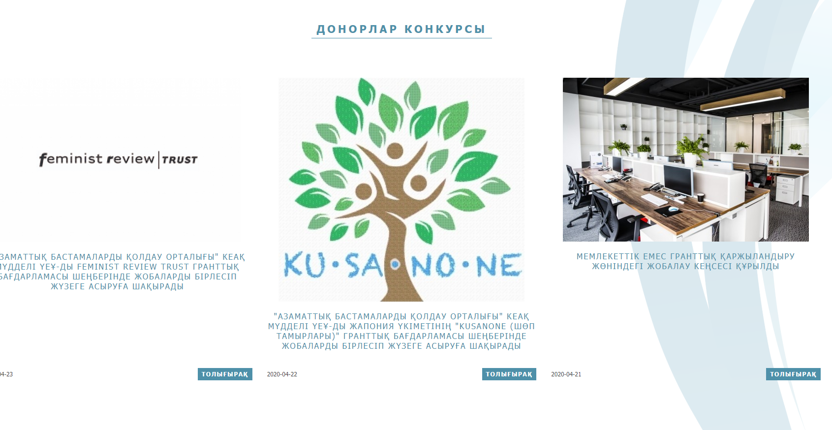 Құрметті ҮЕҰ өкілдері! «Азаматтық бастамаларды қолдау орталығында» ағымдағы жылдың қаңтар айынан бастап Мемлекеттік емес гранттық қаржыландыру жобалық кеңсе өз жұмысын