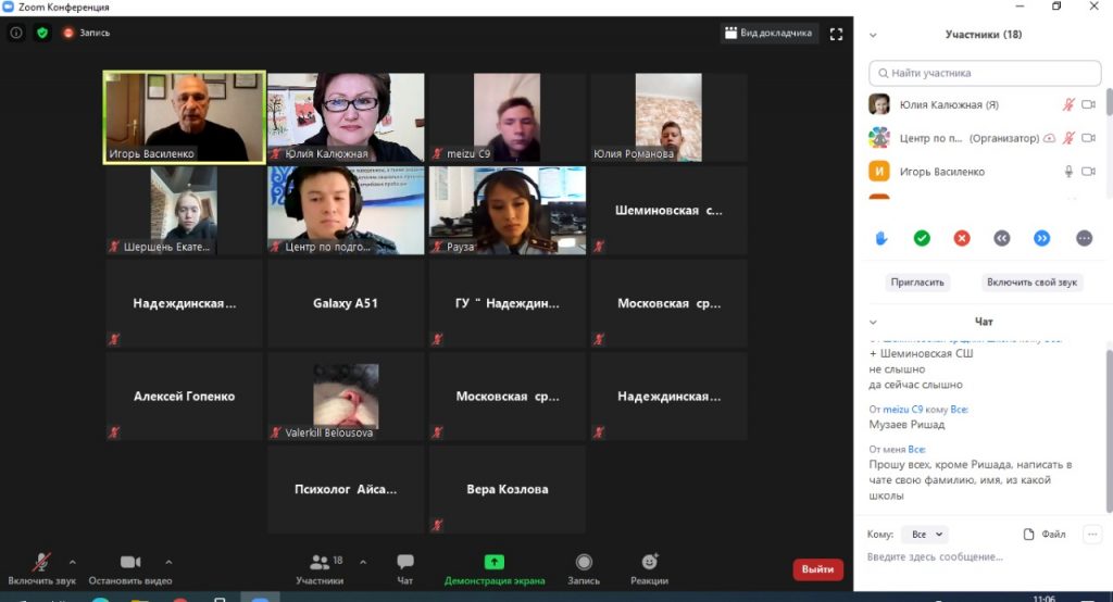 5 октября учащиеся старших классов средних школ Костанайского района были приглашены на онлайн экскурсию в Костанайскую Академию МВД им. Ш.Кабылбаева. Психолог Рауза Байганина рассказала подросткам о том, как готовят будущих полицейских и что необходимо для того, чтобы стать курсантом Академии.