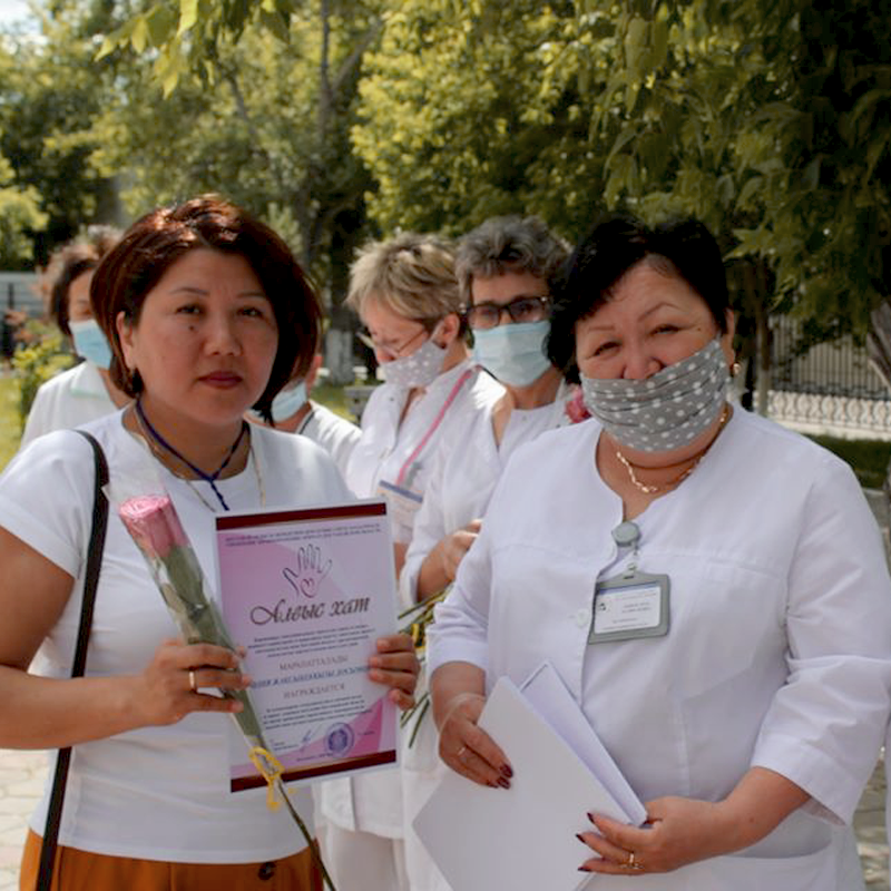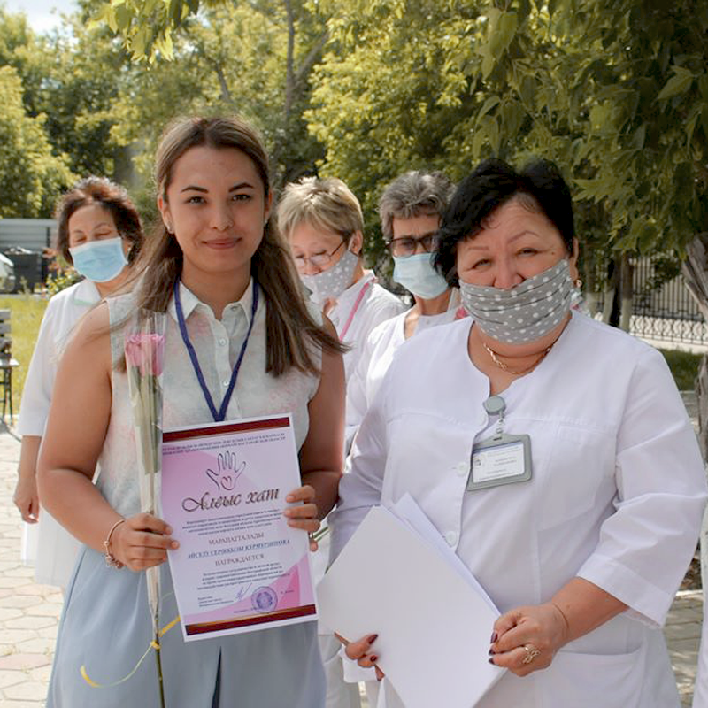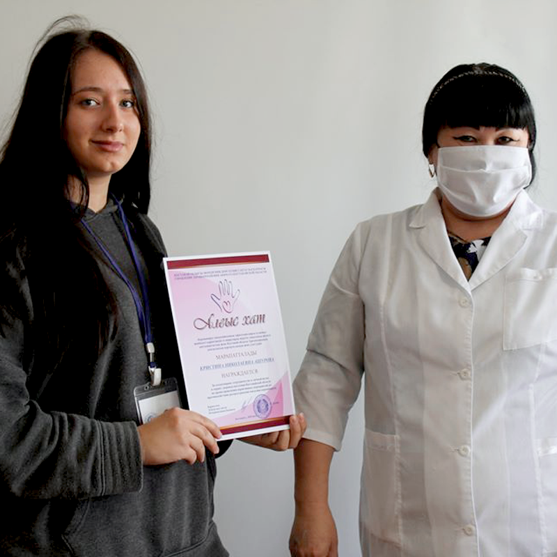В поликлиниках №1 и №3 города Костаная волонтерам, развозившим лекарства в период карантина, вручили благодарственные письма от имени руководителя управления здравоохранения акимата Костанайской области Дудник В.Ю.